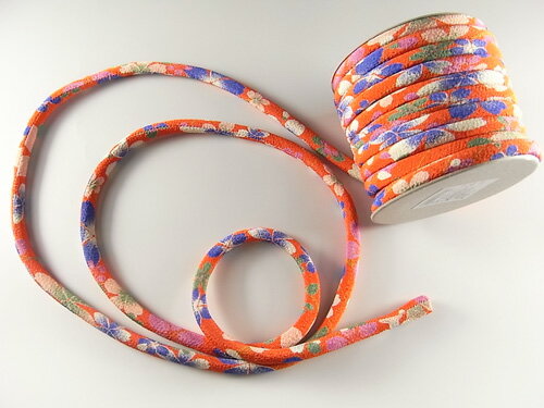 オレンジ系のちりめん丸ひもは珍しいのでご活用ください。