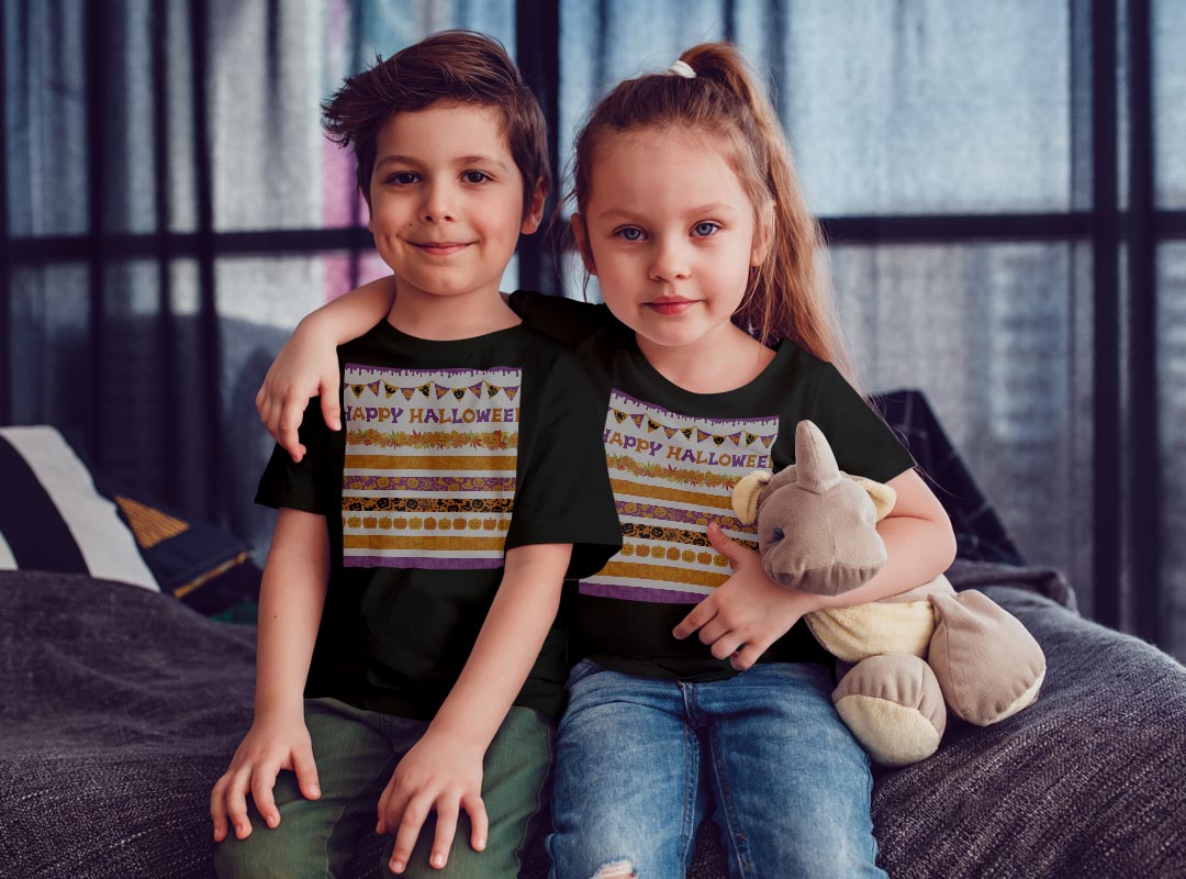 tシャツ キッズ 半袖 黒地 ブラック デザイン 90 100 110 120 130 140 150 Tシャツ ティーシャツ T shirt 013817 ハロウィン かぼちゃ コウモリ