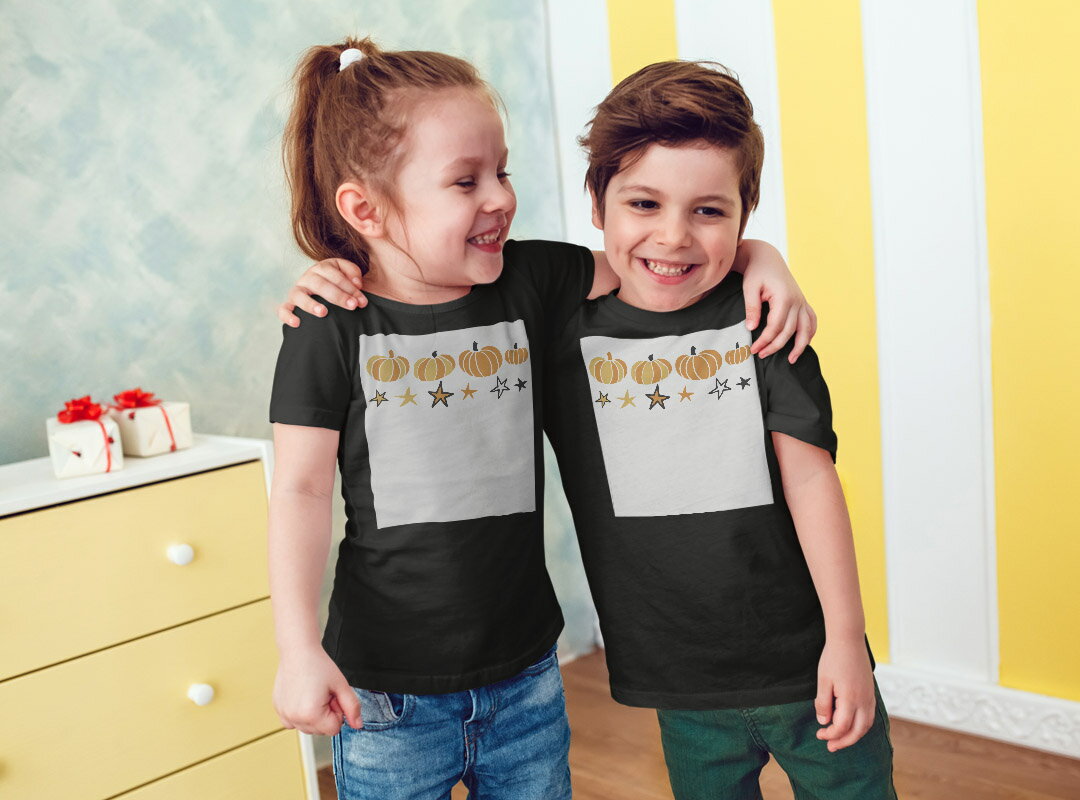 tシャツ キッズ 半袖 黒地 ブラック デザイン 90 100 110 120 130 140 150 Tシャツ ティーシャツ T shirt 017474 ハロウィン かわいい かぼちゃ パンプキン 星