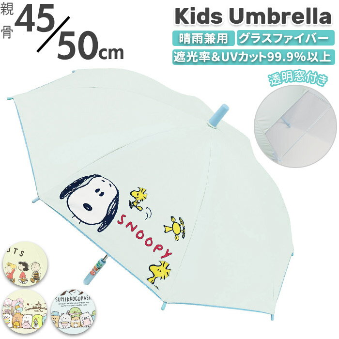 キッズ 日傘 晴雨兼用 好評 子供 長傘 45cm 50cm キャラクター グッズ スヌーピー すみっコぐらし 子ども 園児 かわいい 女の子 男の子 紫外線 対策 uvカット 遮光 おしゃれ 傘 かさ