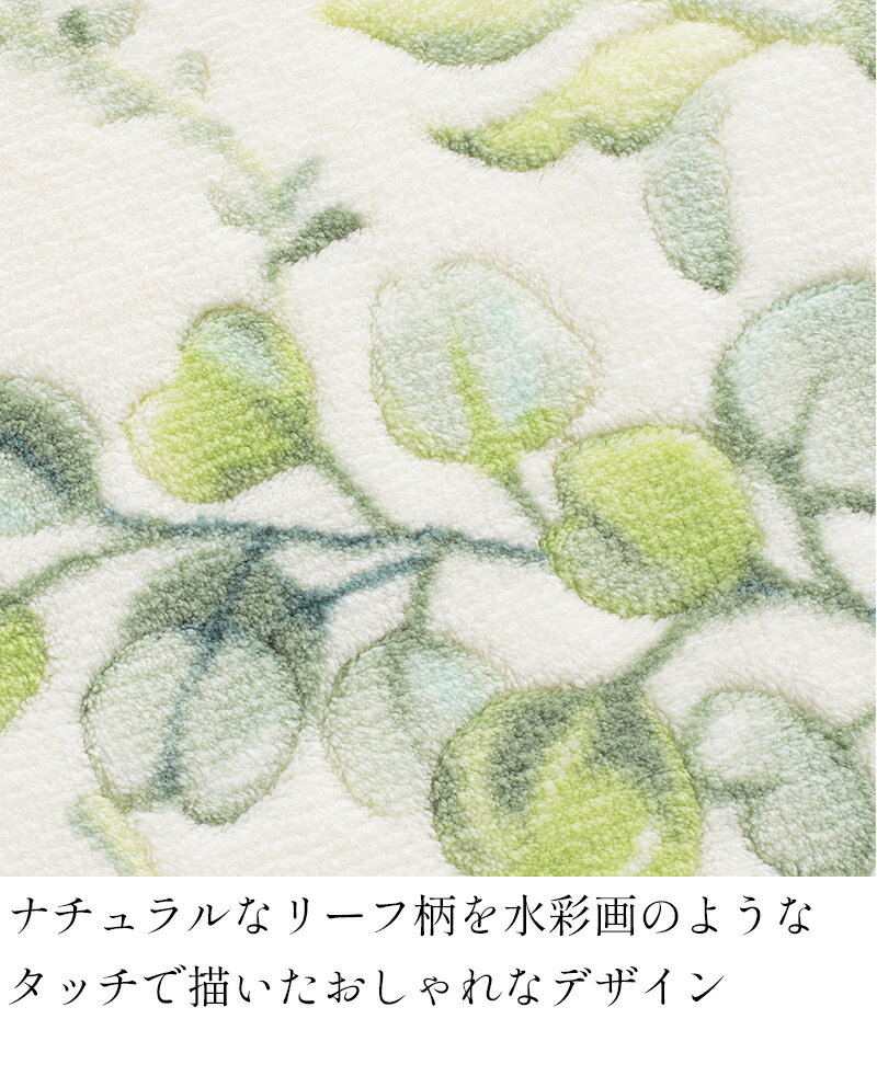 商品の詳細 Detail カラーバリエーション Color アイボリー…リーフ模様のグリーンが映えるナチュラルな色合い ターコイズ…深みのある青緑系の色合い なかなか出会えないおしゃれなカラーです 吸着ふたの装着について 水彩画タッチのリーフ柄 ウォーターリーフ シリーズ トイレマット単品 65×60 吸着タイプフタカバー スリッパ ペーパーホルダーカバー タオル 玄関 バスマット キッチンマット240 キッチンマット180 キッチンマット120 水彩画タッチのリーフ柄 トイレフタカバー まるで水彩画のような優しいタッチで描かれたリーフの模様 市販品では珍しい通常の糸より細く、滑らかな高級素材を使用。