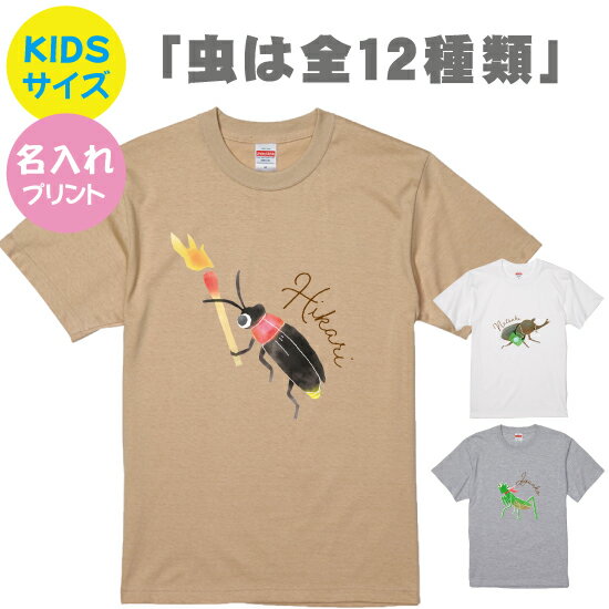 【送料無料】虫Tシャツ【Kidsサイズ90-160】名入れ お揃いコーデ オリジナルギフト 親子セット 出産祝い お誕生日 リンクコーデ 半そで Tシャツ 半袖 プレゼント むし トンボ アゲハ蝶 カブトムシ クワガタ セミ 夏 男の子 テントウムシ スズムシ 蛍