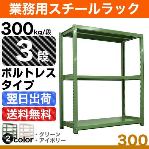 スチール棚 幅90×奥行60×高さ210cm 3段 単体 300kg/段 ボルトレス 重量:44kg