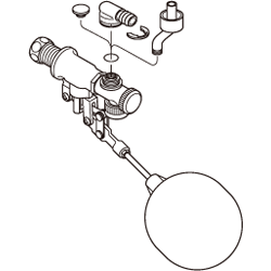 和式(角付タンク)の手洗付、手洗なし、洋式タンクの手洗付、手洗なし兼用 手洗付和式トイレ、洋式トイレ用の、トイレロータンク内部のボールタップです。
