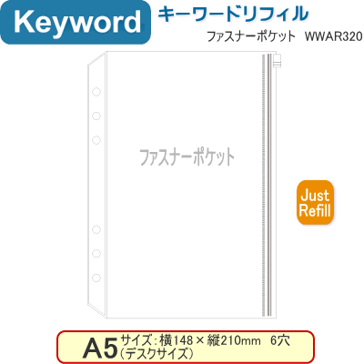 システム手帳 A5 リフィル ファスナーポケット キーワード