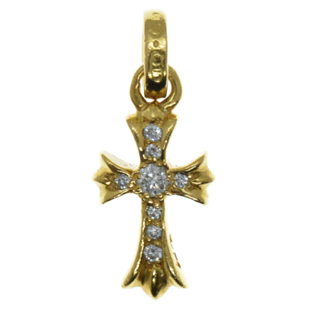クロムハーツ/Chrome Hearts 【22K TNY CRSF P/DMND/タイニーファットクロス】PAVEダイヤ/ペンダント/ゴールドネックレストップ(イエローゴールド×クリア/10.48g)【708022】【OM10】【小物】【中古】bb333#rinkan*B