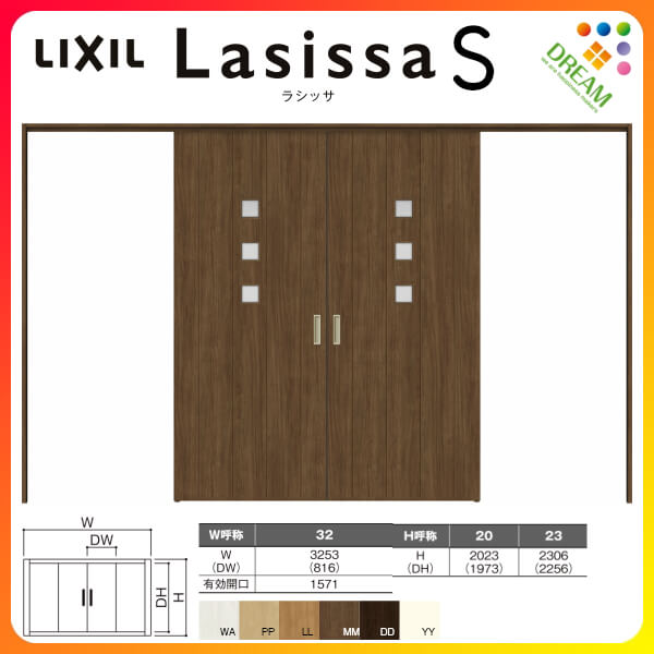 DIYに関する情報 必要技能:大工さん、建具屋さん 必要工具:電動ドリル、電動ドライバー、他 【商品説明】 【納まり図】 LIXIL/リクシルの室内建具 インテリアリビング建材 ラシッサ S  ラシッサS(Lasissa S)はファミリーライン(FamilyLine)、ウッディーライン(WoodyLine)の後継商品シリーズで、合わせやすい色目に幅広くオーソドックスなインテリアをカバーするクリエカラーが特徴です。