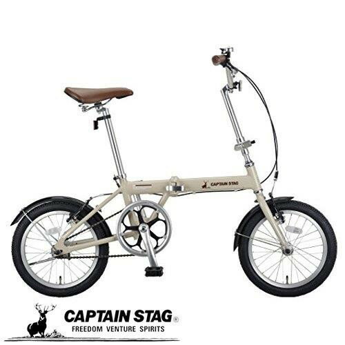 キャプテンスタッグ AL 16インチ 折りたたみ自転車 アルミフレーム [重量約10kg/前後V型ブレーキ/SHIMANOパワーモジュレーター/高ギア比設定/前後泥よけ] ラテ