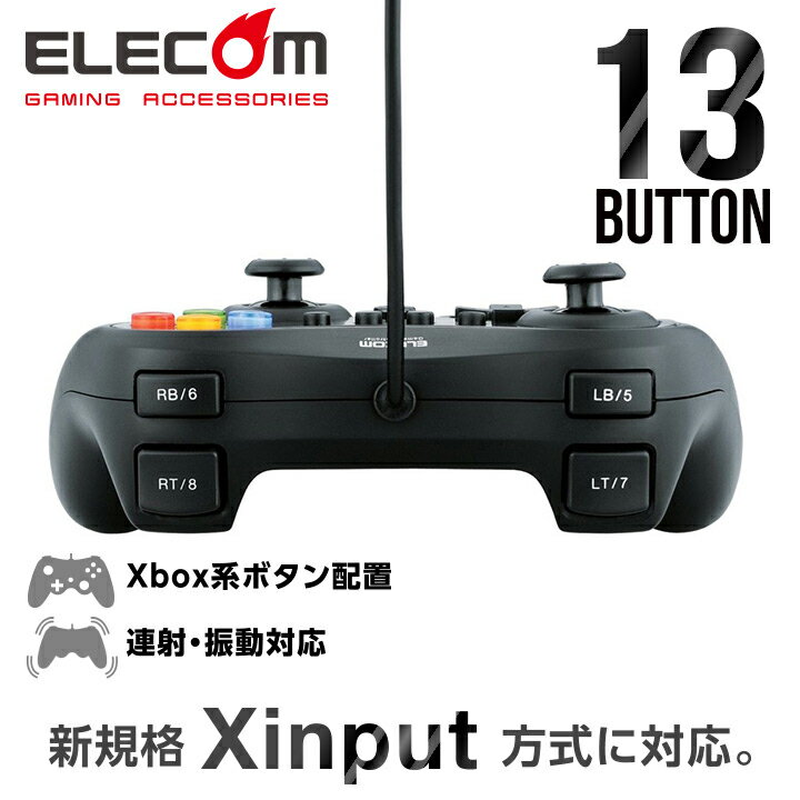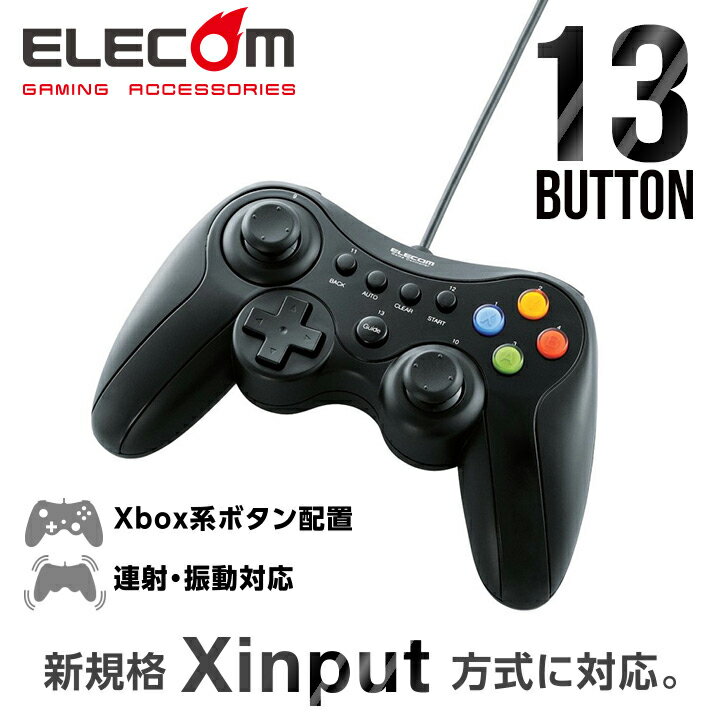 ≪商品の概要≫■ボタン数:Direct Inputモード:13ボタン / Xinputモード: 11ボタン+2アナログトリガー■振動機能:あり(モーター×2)■連射機能:あり(ボタンごとに設定可能)■動作モード:Xinput / Direct Input切替対応■アナログスティック:2本■POV(ハットスイッチ):あり■軸数:4軸■対応機種:USBインターフェイスを装備したWindowsパソコン■対応OS:Windows 8 / 7(〜SP1) / Vista(〜SP2) / XP(SP3)■インターフェイス:USB■コネクタ形状:USBタイプAオス■ケーブル長:1.7m■サイズ:長さ161.0mm×奥行98.0mm× 高さ64.5mm ※ケーブルを除く■重量:約230g■電源:USBバスパワー■電源電圧:5.0V■最大消費電流:500mA■付属品:ドライバCD-ROM×1、ユーザーマニュアル×1■本体カラー:ブラック■保証期間:6カ月※送料無料商品のお客様都合によるご返品について こちらの商品は送料無料としておりますが、お客様都合によるご返品の場合は、ご注文商品発送の際に弊社が負担した送料(梱包・事務手数料含め)は差し引いてのご返金となります。