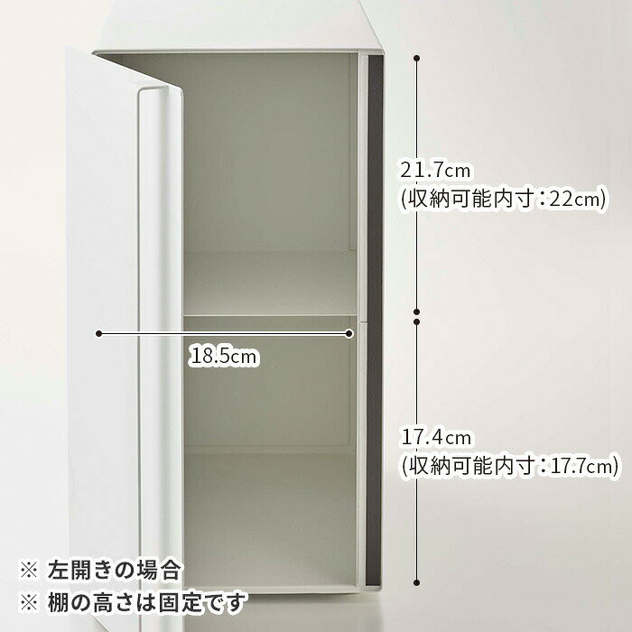 SIZE&COLOR 付属品 緩衝材×2 サイズ 約 横幅22cm × 奥行き34.5cm × 高さ41cm (クッション含む) [内寸] 約 横幅18.5cm 低い段:約 高さ17.4cm (収納可能内寸:17.7cm ) 高い段:約 高さ 21.7cm (収納可能内寸:22cm ) 材質 本体・扉:スチール(粉体塗装) / マグネット / クッション・緩衝材:シリコーン 耐荷重 本体上部:約 2kg / 棚:約 5kg 備考 ※ 焼きたての熱いパンは収納しないでください。