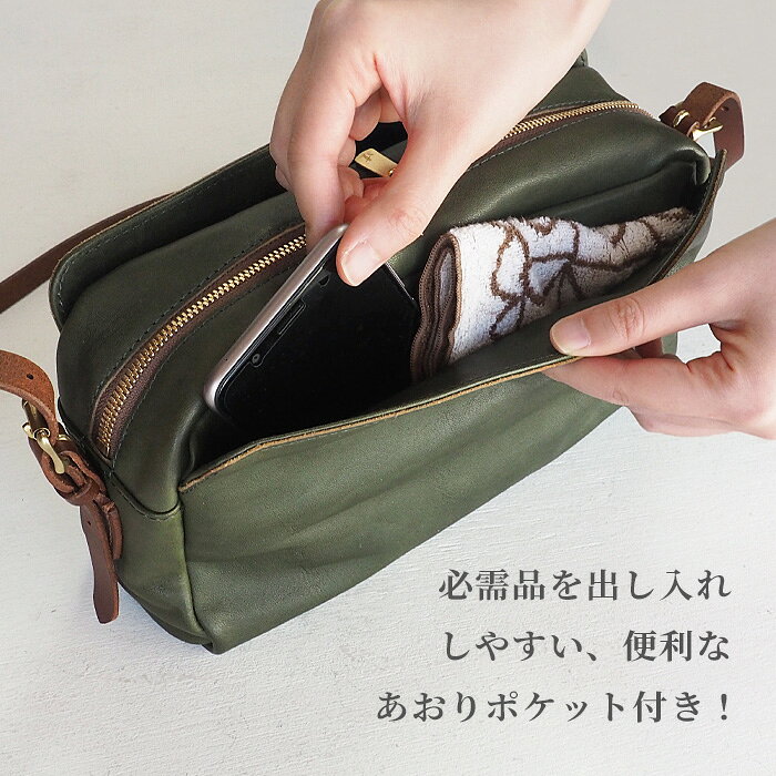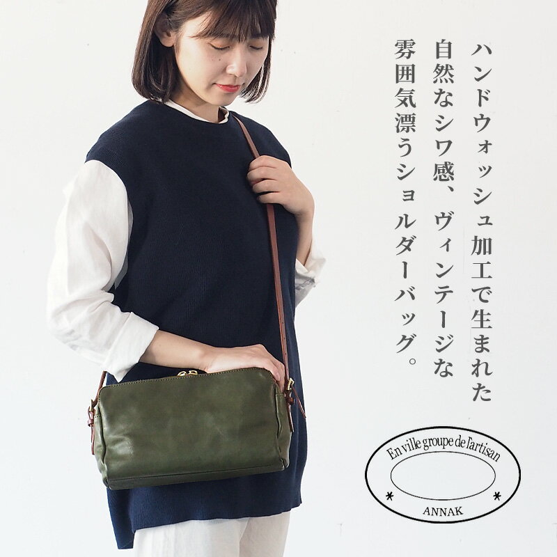 ANNAK(アナック) あおりポケット付きショルダーバッグ 栃木レザー ウォッシュドレザー グリーン [AK18TA-A0004-GRN] カジュアルから、キレイめまで 普段使いしやすいシンプルなデザイン。