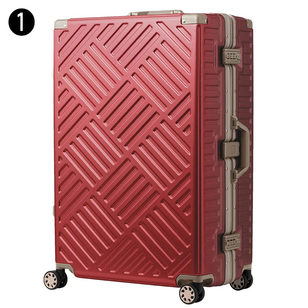商品 デッキ DECK スーツケース キャリー ハード 大型 100L 10泊以上 Lサイズ フレームタイプカラー 1.レッド(99x551070rd)2.ネイビー(99x551070nv)3.シャンパンゴールド(99x551070cgd)4.ガンメタ(99x551070gm)サイズ(約)※当店実寸値本体サイズ:70×48×30cm全体サイズ:76×51×30cm3辺の和:157cm素材ポリカーボネート+ABS樹脂重さ(約)5.7kg/100L生産国-備考 機内持込対応:×無料受託手荷物(158cm以内):〇開閉部:フレームタイプキャスター:ダブルキャスター(合計8輪)軽量ポリカーボネート+ABS樹脂を使用した大容量スクエアボディのスーツケース。