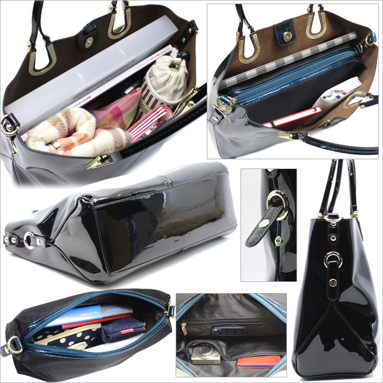 D2502P エナメル馬蹄2wayバッグインバッグ 「新作デザイン」インナーバッグが人気のブラック(黒)に変更になりました!! ※インナーバッグのファスナー周りのカラーはバッグと同色になります。