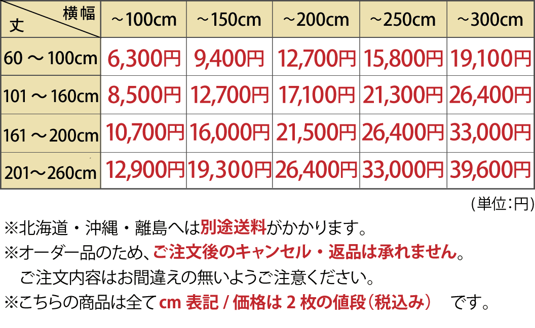 ※幅は70cm〜、丈100cm〜ご注文いただけます。