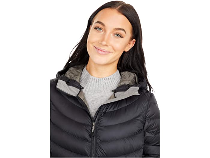 女性用のLLBeanプチウルトラライト850ダウンフード付きコートは、DownTekPFCで断熱されています。