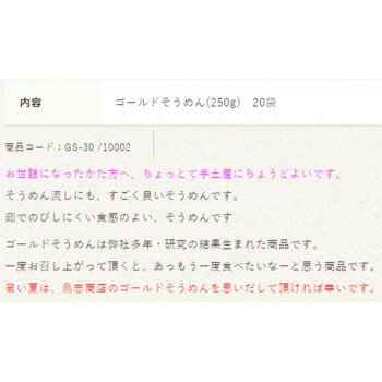 [商品名]鳥志商店 ゴールドそうめん15袋入 GS-23代引き不可商品です。