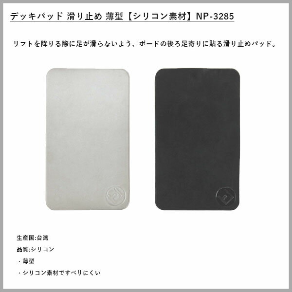 デッキパッド 滑り止め 薄型 スノーボード 【シリコン素材】 NP-3285 リフトを降りる際に足が滑らないよう、ボードの後ろ足寄りに貼る滑り止めパッド。