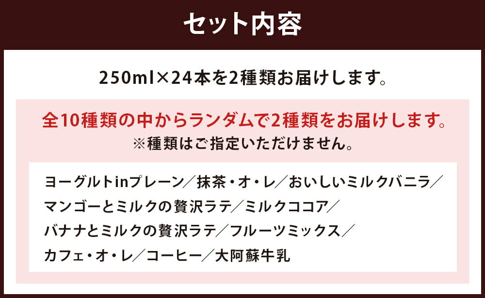 商品説明 名称 【訳あり】らくのうマザーズ LLシリーズ 48本セット 主原料産地 益城町 内容量 250ml×24本×2種類 以下の10種類の中からランダムで2種類をお届けします。