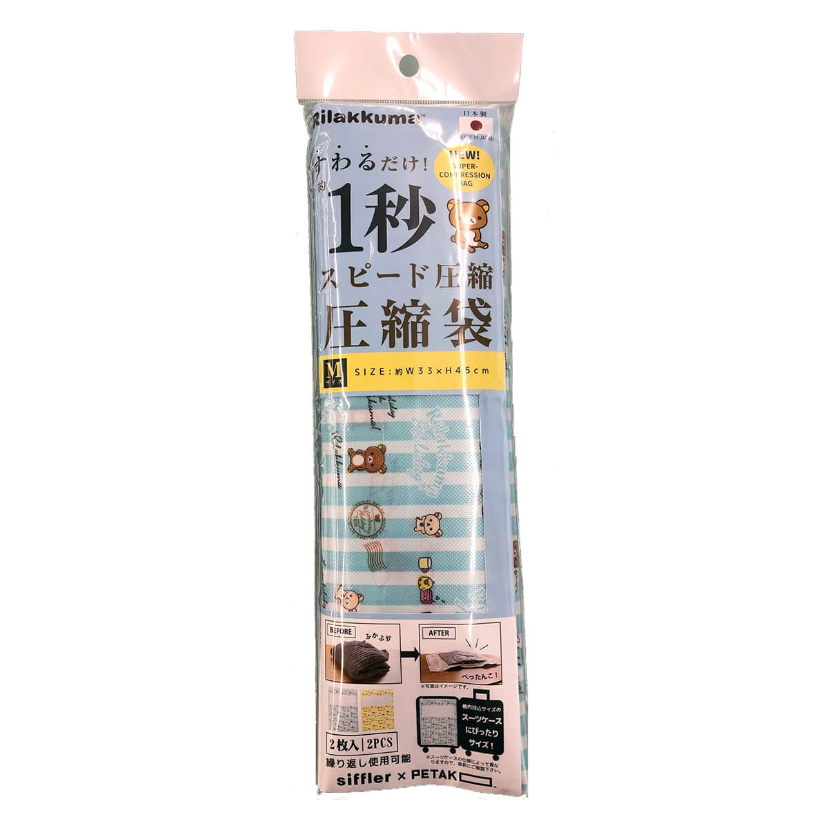 圧縮袋 2枚入 リラックマ 座るだけ 1秒 旅行 便利 衣類圧縮 簡単 コンパクト 収納 トラベルコレクション ペタコ PETAKO シフレ PTK7066