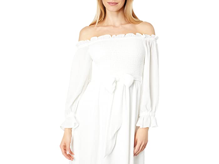 (取寄) ワンステート レディース オフ ショルダー バブル スリーブ スモック ボディス ドレス ウィズ セルフ タイ 1.STATE women Off Shoulder Bubble Sleeve Smocked Bodice Dress with Self Tie New Ivory