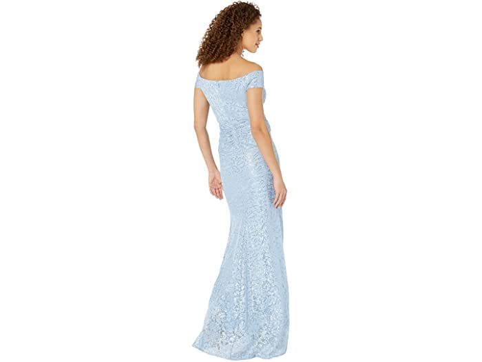 (取寄) ヴィンスカムート レディース オフショルダー ガウン ウィズ V バー AT ネック Vince Camuto women Off-the-Shoulder Gown with V Bar At Neck Sky