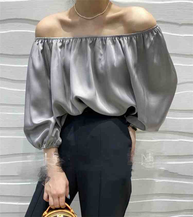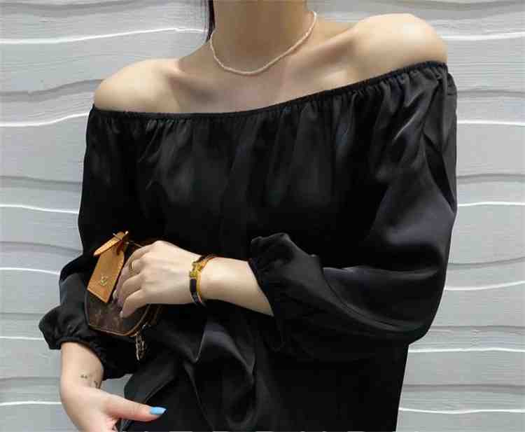 オフショルダー トップス ランタンスリーブ セクシー ブラウス【大きいサイズ レディース 夏秋 チュニック フォーマル オフィス ボウタイ シフォン シャツ インナー blouse】